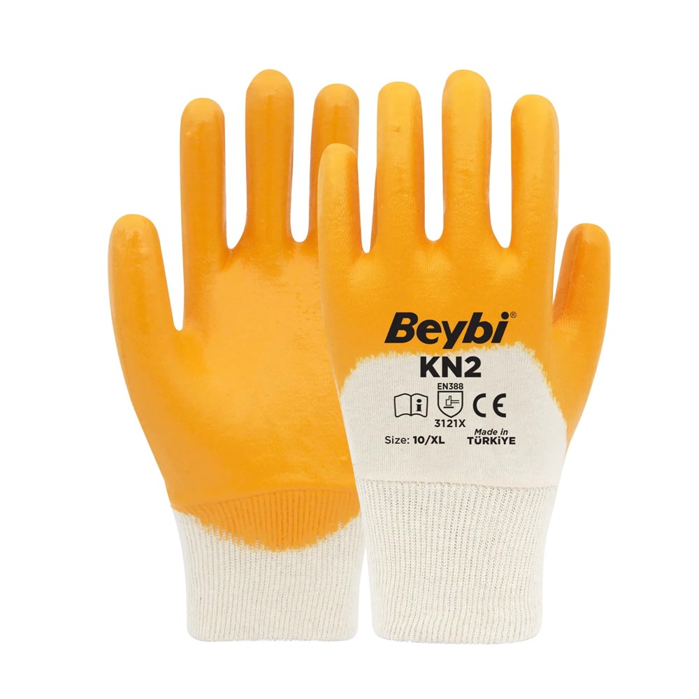 Pamuk astar üzerine sarı nitril kaplı iş eldiveni.